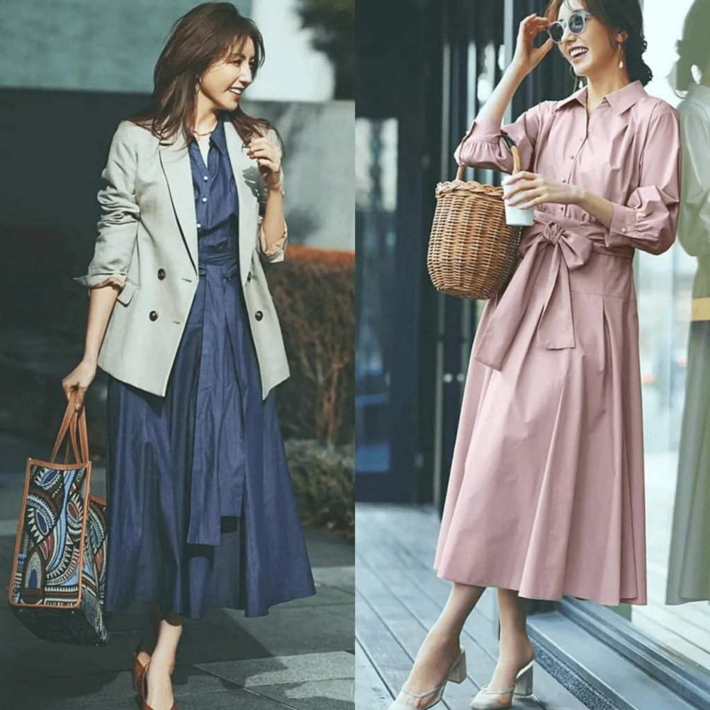 挑選面料垂順有型,不會輕易變形起褶皺感的泡泡袖上衣或者裙子;或者選擇版型硬挺,肩線有型且腰線也突出的設計,上身也同樣能把中年女性的沉穩和高級的氣質展現而出。