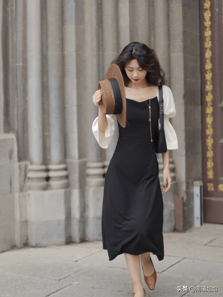 因為泡泡袖的設計,都會讓整體看上去屬於上半身比較寬的效果。所以無論你選擇上衣穿搭,還是連衣裙穿搭,都一定要注意收下擺。比如說要選擇比較修身的短款泡泡袖,或者是腰線比較收的連衣裙。