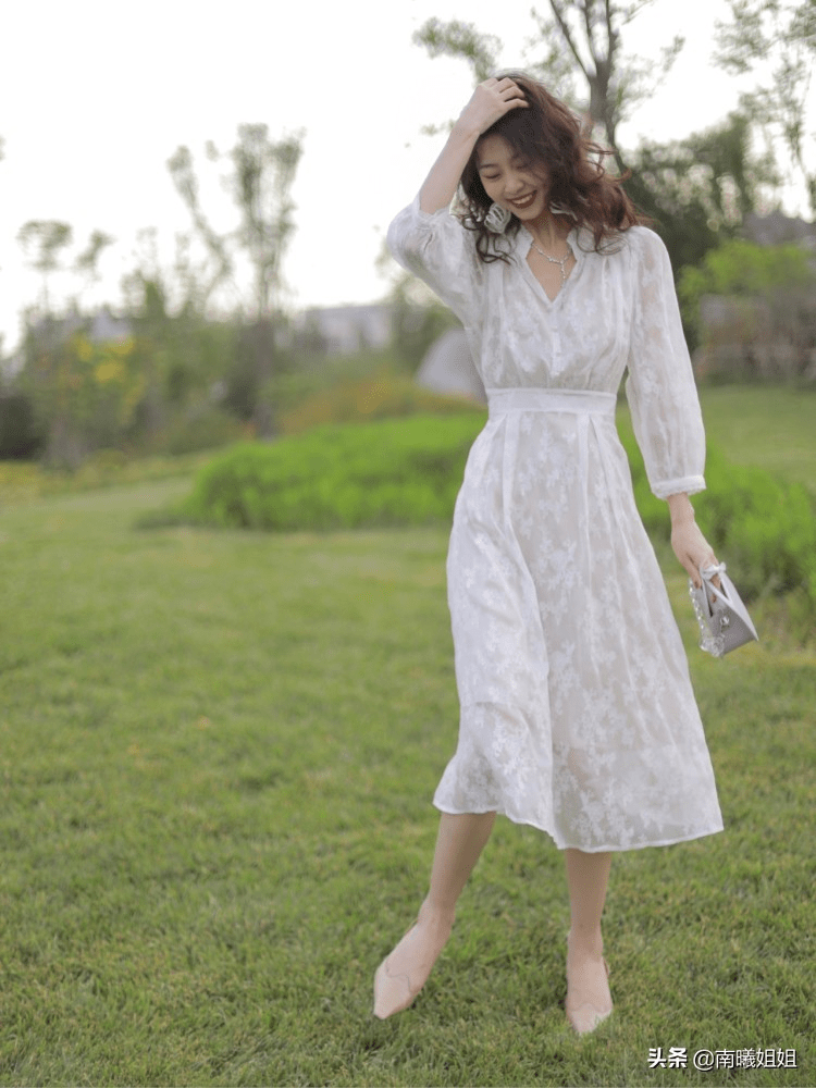 要想打造約會的甜蜜氛圍,首先就是要打造足夠甜和仙的穿搭效果。一襲白裙,搭配著蕾絲的元素,非常精緻和淡雅。搭配著彰顯女人味的尖頭鞋,打造滿分約會穿搭。